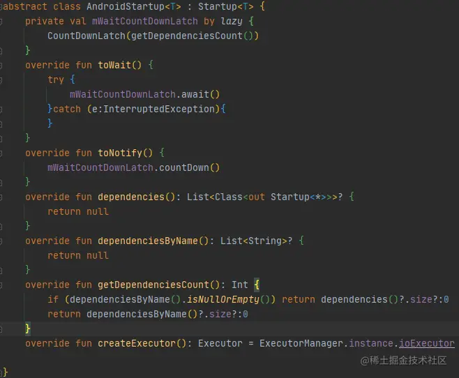 - 定义AndroidStartup抽象类,实现Startup接口,同时实现接口里的部分方法。