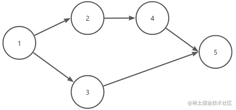 图中的带箭头的边可以看做任务之间的依赖关系,图中的圆代表任务,所有任务共同组成一个有向无环图。最终得到的任务排序为 1->3->2->4->5。