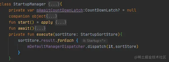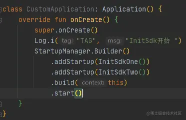StartupManager添加任务完成之后调用start方法即可执行任务的初始化,如果在使用StartupManager之前还有其他工作,那么就可以调用await等待主线程执行结束。
