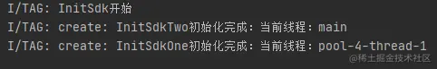 从执行结果可以看出,InitSdkTwo任务虽然最后被添加到任务管理器,但是它优先在主线程中执行,而InitSdkTwo任务虽然是第一个被添加的,但是却最后执行,而且需要等主线程初始化完成后再执行。