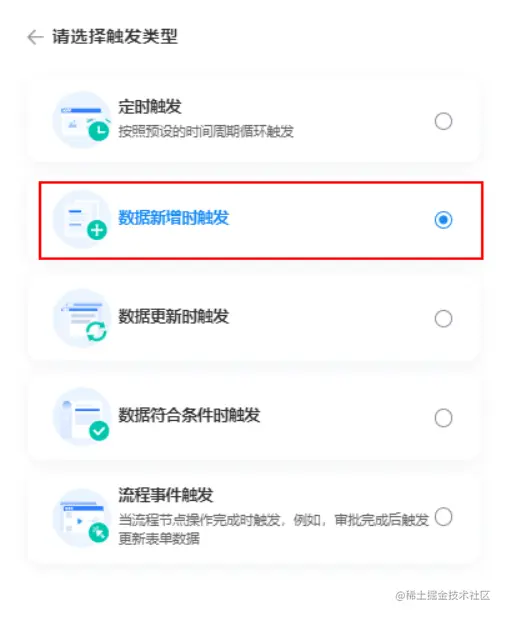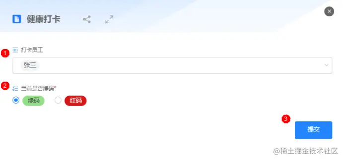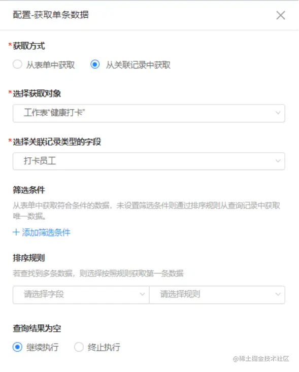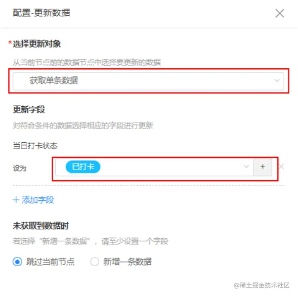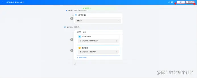 右上角名称设置为“员工打卡后,更改打卡状态”,选择触发器的表单为“健康打卡”。
