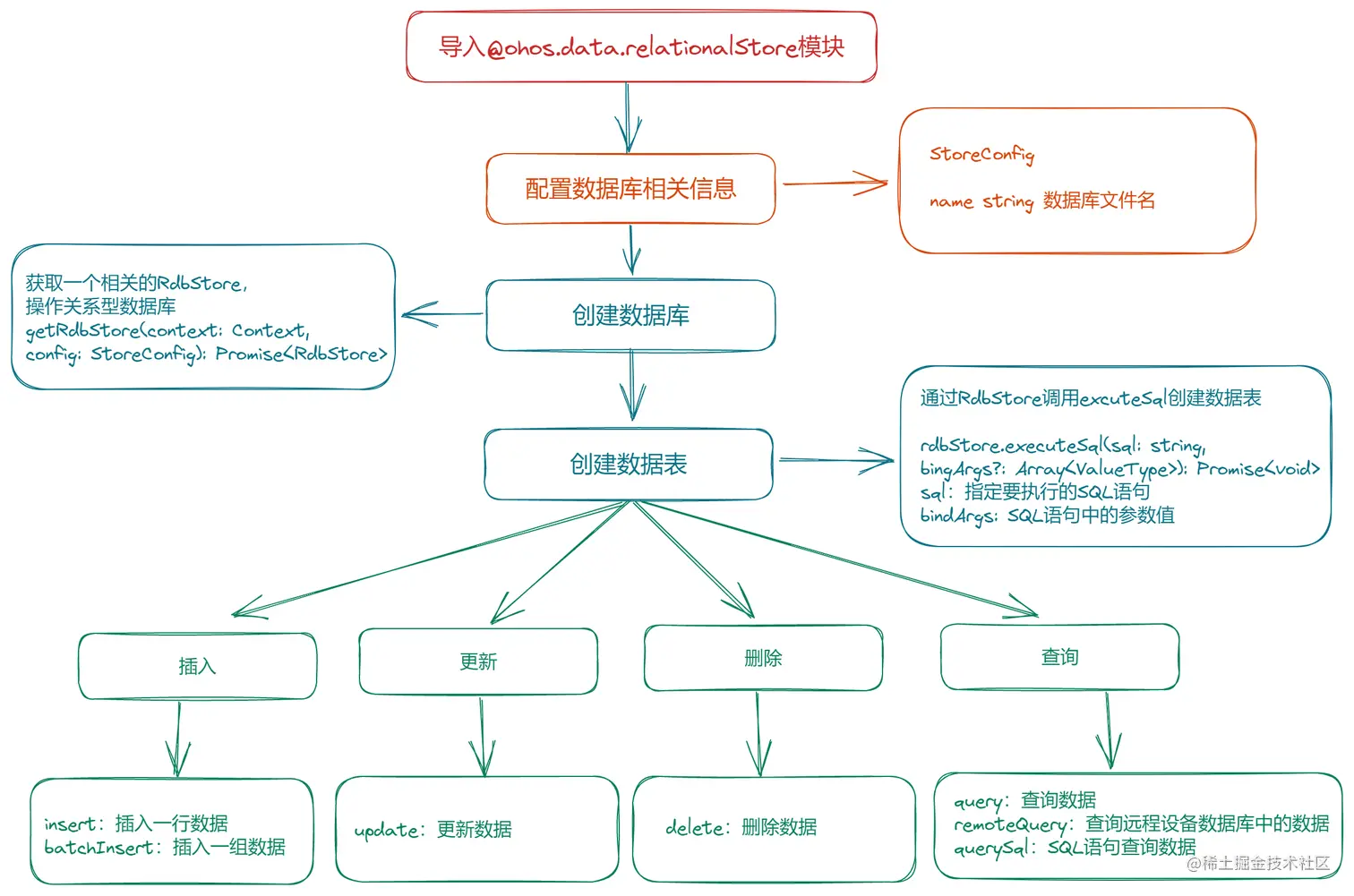 创建数据库后,获取到RdbStore实例。RdbStore提供管理RDB方法的接口,在使用其增、删、改、查等接口之前,需要使用executeSql接口初始化数据表结构和相关数据。