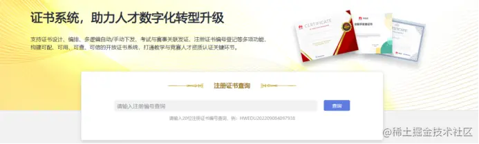 · 华为云Classroom首页开放资质证书查询入口,考生可通过证书编号在线查询,提高了考试、竞赛的影响力与证书质量的可信赖
