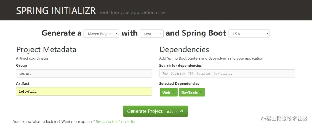 (1)访问 start.spring.io/。