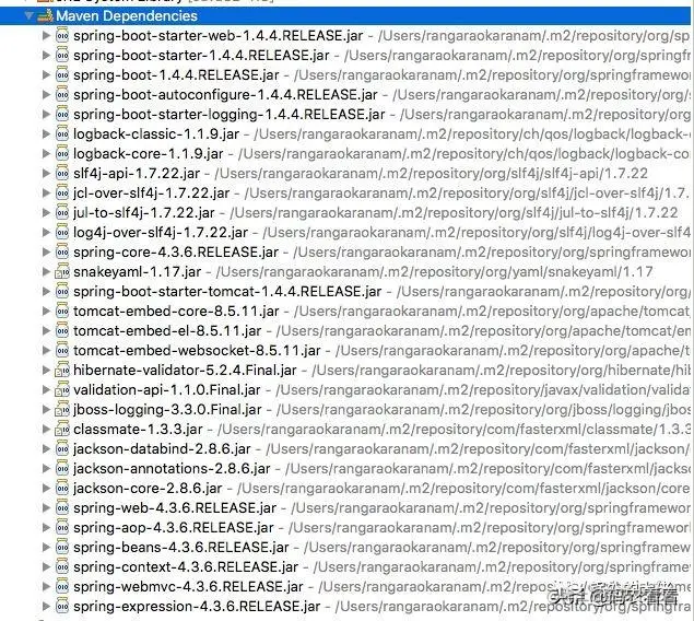任何典型的Web应用程序都将使用所有这些依赖项。 SpringBootStarterWeb预装了这些。作为开发人员,我不需要担心这些依赖项或它们的兼容版本。
