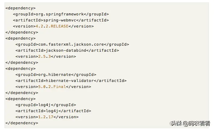 首先,我们需要确定我们想要使用的框架,使用哪些框架版本以及如何将它们连接在一起。所有Web应用程序都有类似的需求。下面列出了我们在Spring MVC课程中使用的一些依赖项。这些包括 SpringMVC, JacksonDatabind(用于数据绑定), Hibernate-Validator(用于使用 JavaValidationAPI的服务器端验证)和 Log4j(用于日志记录)。在创建此课程时,我们必须选择所有这些框架的兼容版本。