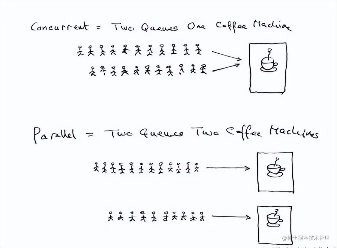 - 并行:多个处理器或多核处理器同时处理多个任务。