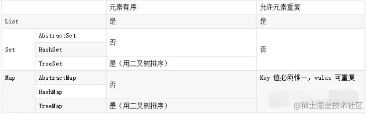 List、Set、Map 的区别主要体现在两个方面:元素是否有序、是否允许元素重复。