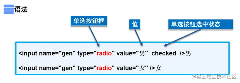 <input name="gen" type="radio" value="女" />女