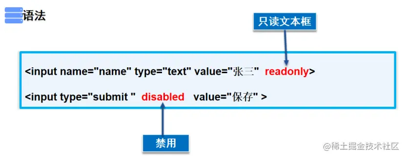 <input name="name" type="text" value="张三" readonly>