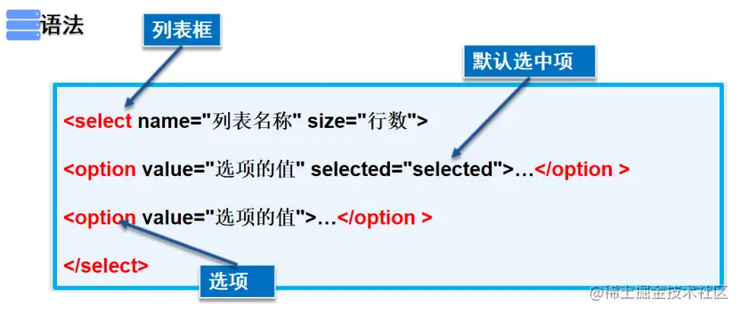 <select name="列表名称" size="行数">