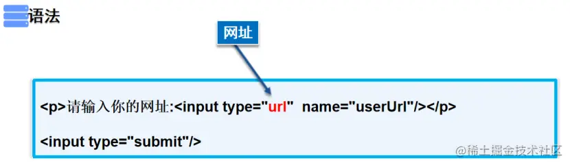 <p>请输入你的网址:<input type="url" name="userUrl"/></p>