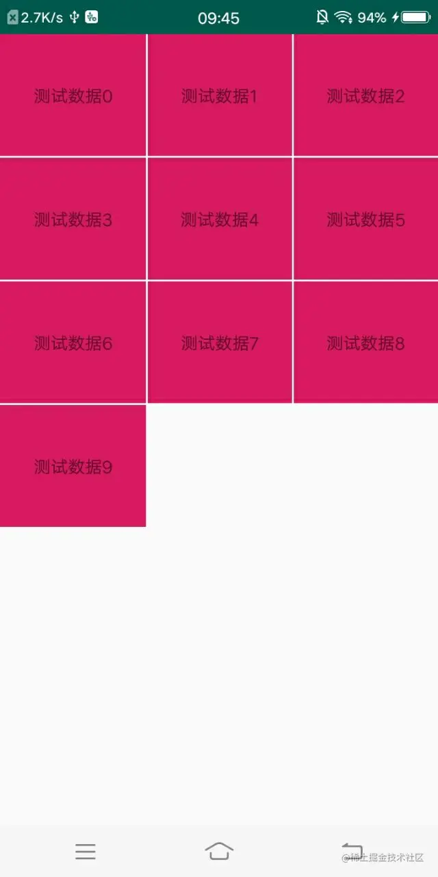 表格布局:mRecyclerView.setLayoutManager(new GridLayoutManager(this, 3));