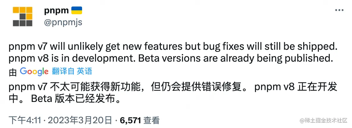 - pnpm v7进入维护期,pnpm v8在路上了