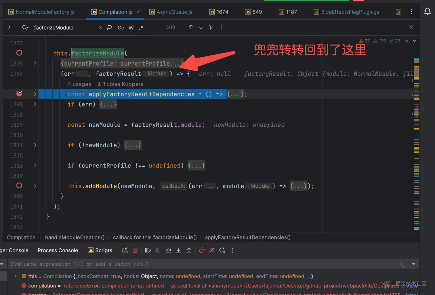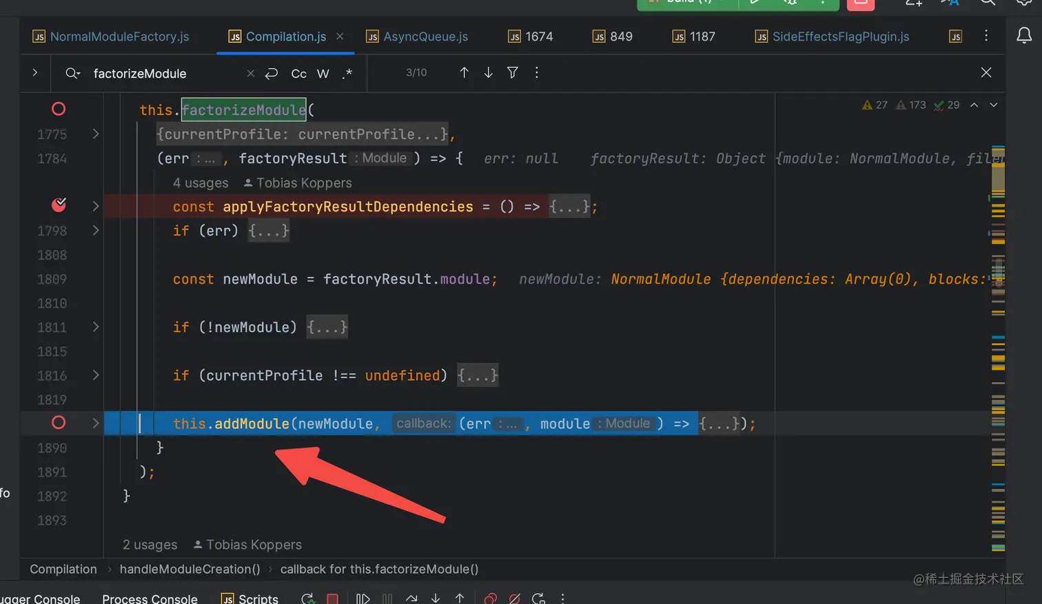 兜兜转转的,又回到了 Compilation.js 这个文件。继续调试,大概率是要进入 addModule这个方法的。