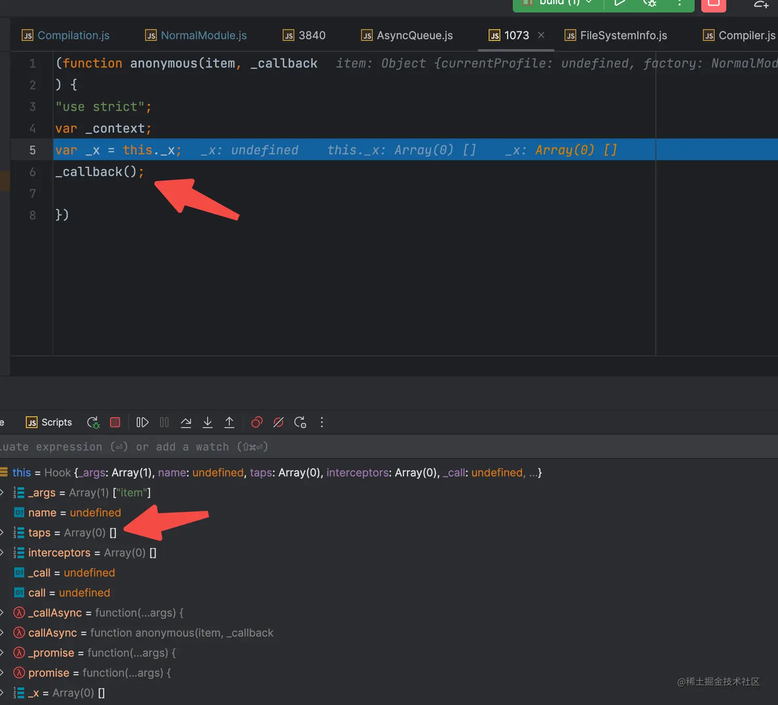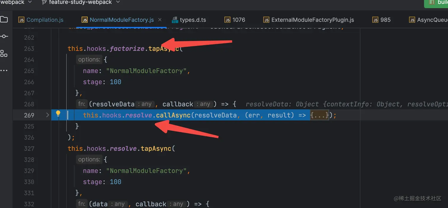 因为 err 和 result都为空,最后走到了afterResolve的hook里。 大家都应该会调试了,直接说结果了,没有插件去监听afterResolve的hook,所以直接进其内部了。