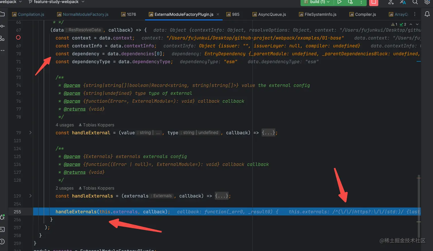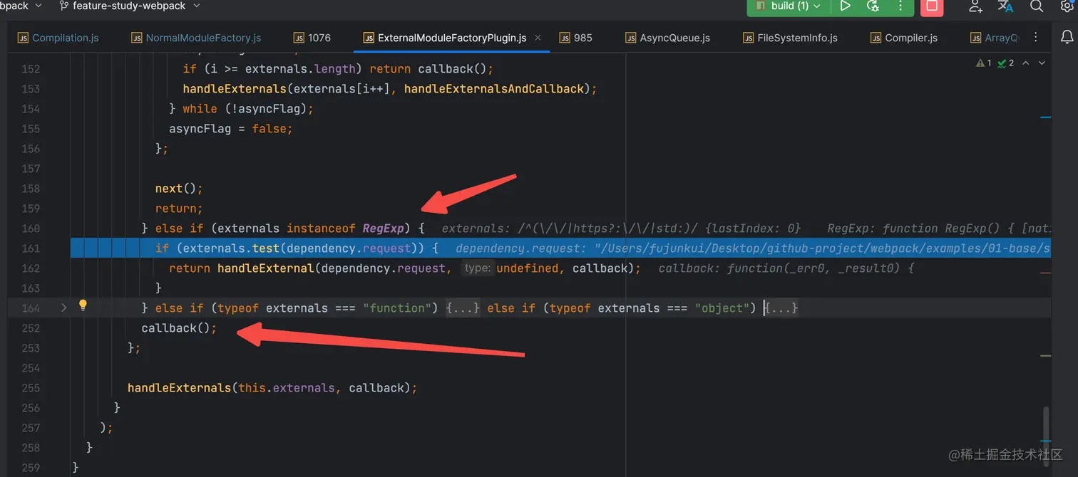 部分核心代码的运行时的参数截图如下: 此处主要是判断 此文件的request路径是否以某些行内 loader 的方式进行开头的。 详情见官网