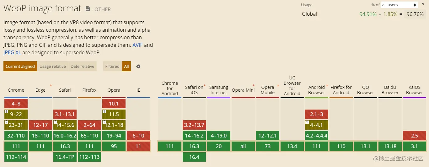 WebP集多种优点于一身,但是其兼容性问题是一个问题(虽然时至今日除了IE主流浏览器都支持),但是我们需要对不支持WebP图片格式的浏览器做降级方案。