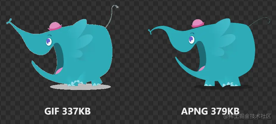 我们可以看到GIF和APNG在文件大小上相差不大,但是GIF图片边缘有毛边。