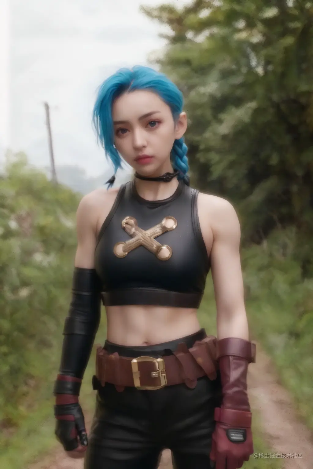 prompt: JinxLol,mature female,1girl, solo,looking at viewer, navel, gloves, fingerless gloves, character name, midriff, bare shoulders, looking at viewer, gun, crop top, belt,outdoors,lora:JinxLolEp8dim8:1, lora:Jinx:1 lora:KoreanDollLikeness:0.3 Negative prompt: (low quality, worst quality:1.3), (lowres), blurry,text,watermark,signature,artist name,letterboxed, female pubic hair,realism Steps: 20, Sampler: DPM++ 2M Karras, CFG scale: 7, Seed: 2754482513, Size: 512x768, Model hash: fc2511737a, Model: chilloutmix_NiPrunedFp32Fix, Denoising strength: 0.5, Clip skip: 2, Hires upscale: 2, Hires upscaler: Latent