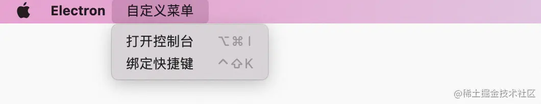 在 Electron 应用中,也提供了对应的功能,在创建菜单(Menu)的时候,可以指定窗口快键键,示例代码如下: