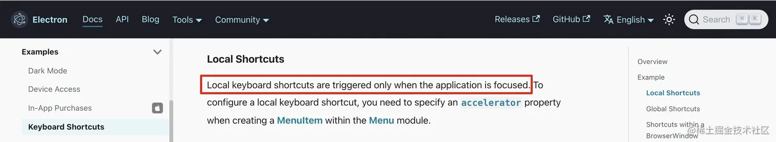 社区有开发者基于此封装了 electron-localshortcut 包,可以非常方便的给不同的窗口(BrowserWindow)绑定快捷键,使用起来更简单:
