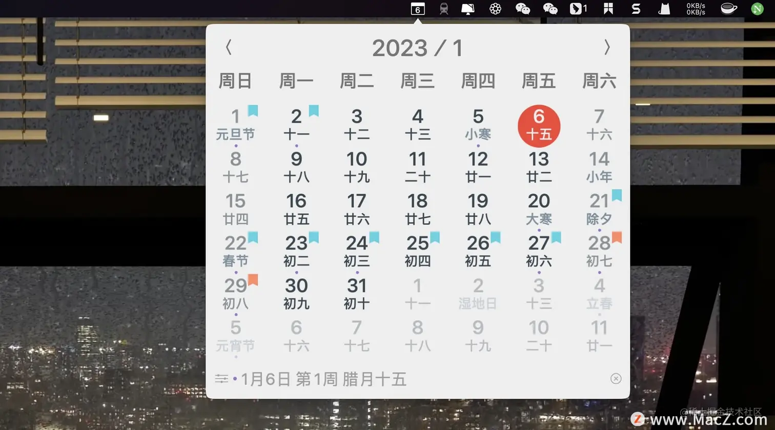 TinyCal for mac是一款最受欢迎的小而美的中国农历日历小历,TinyCal for Mac运行在菜单栏,支持显示阳历、农历、节日节气和法定节假日,还能快速添加日历事件,TinyCal Mac版不仅界面简洁,功能也很实用。