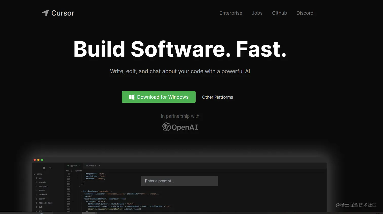 看官网接受大家应该就知道是什么东西了,他是一个开源的AI编程编辑器。开源地址github.com/getcursor/c…