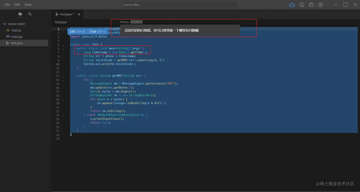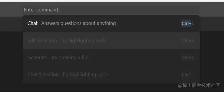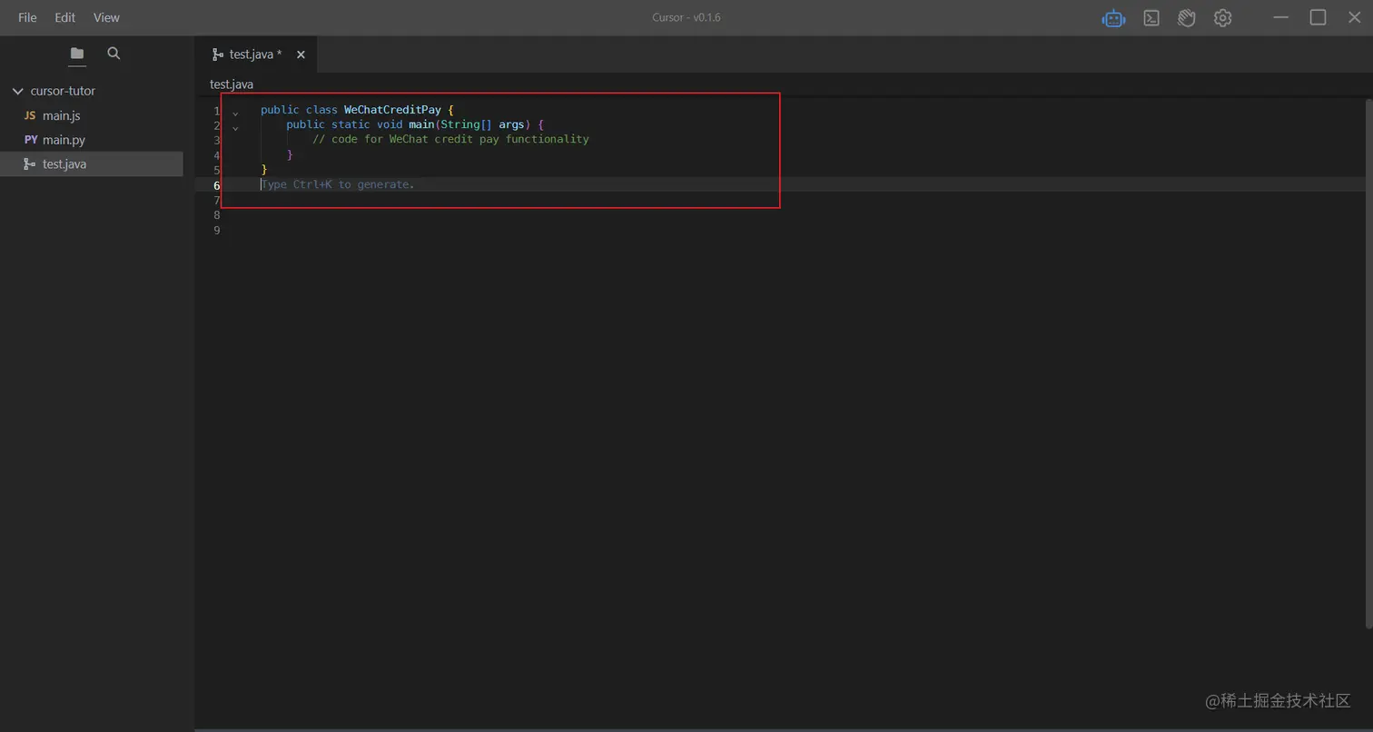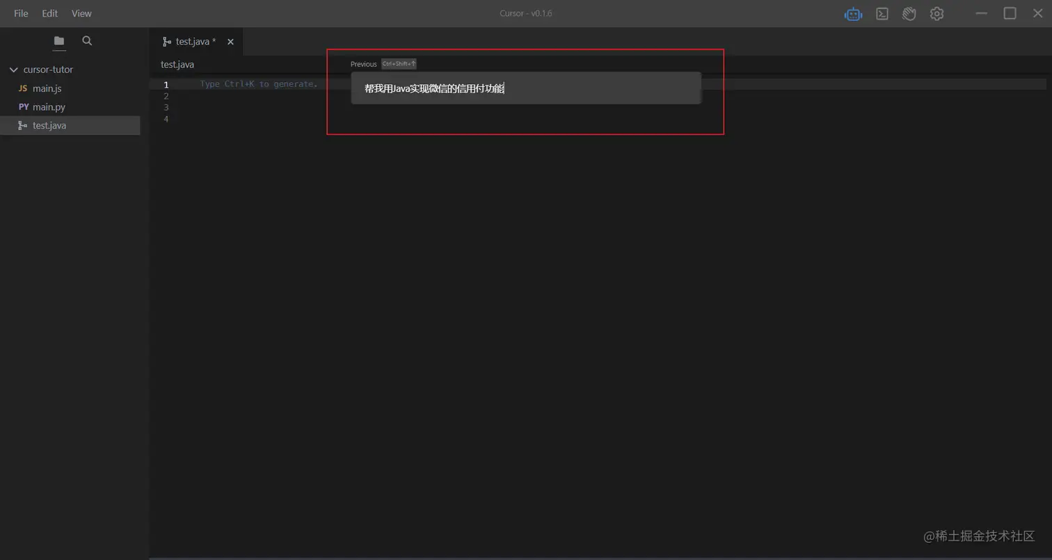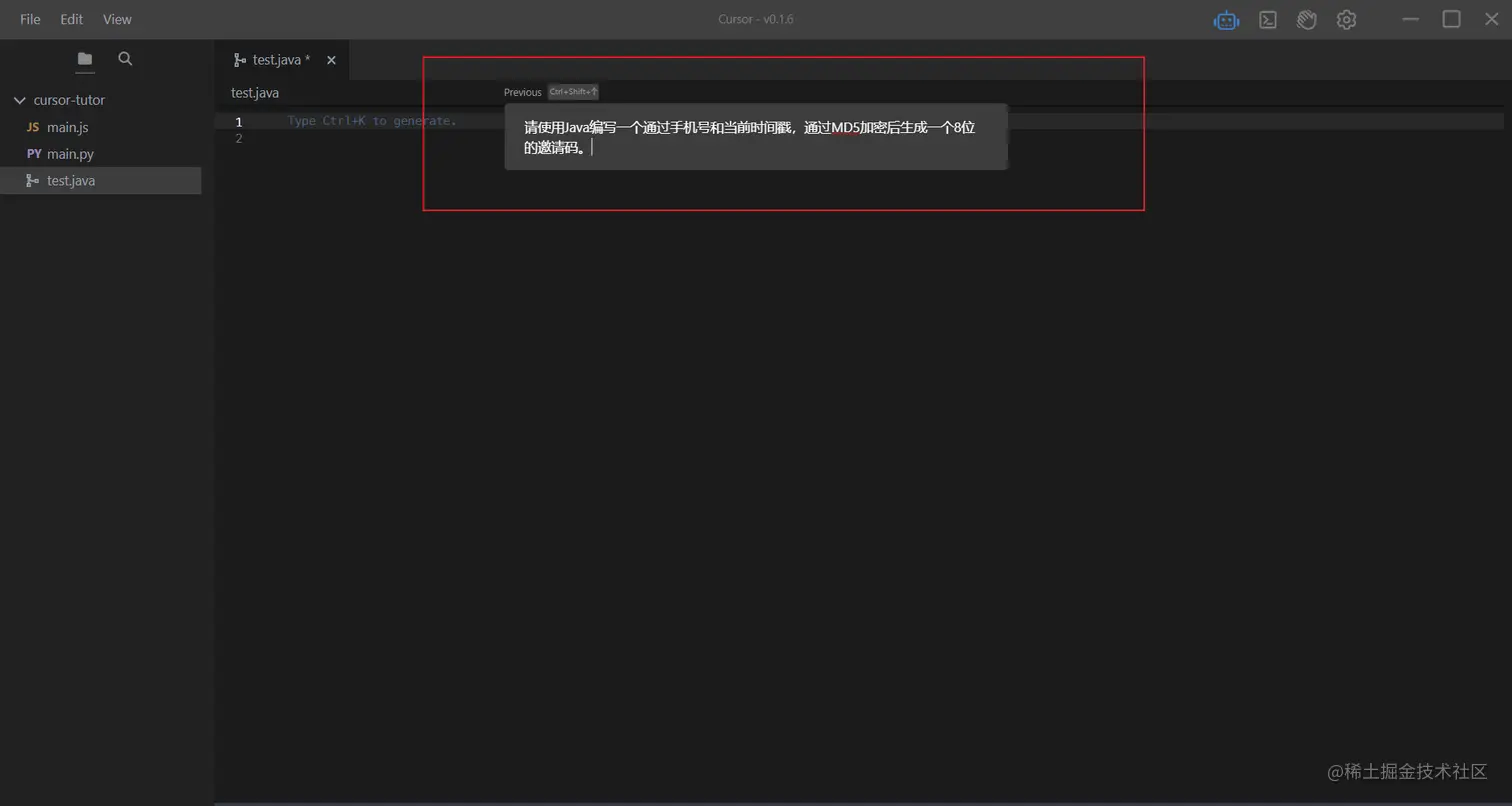 Ctrl+K,理解过来就是帮你写代码的,也能帮你修改代码。