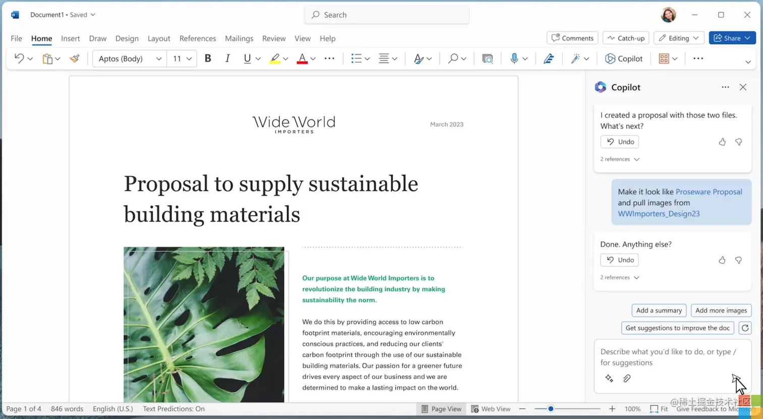 让你告别思路堵塞效率倍增,轻松起草一个指定风格(严肃、欢快等)的文案,自由指令操作要求编辑修改,还可以生成配图报告,还可以调用其他工具比如OneNote等,让Word更具创造力。