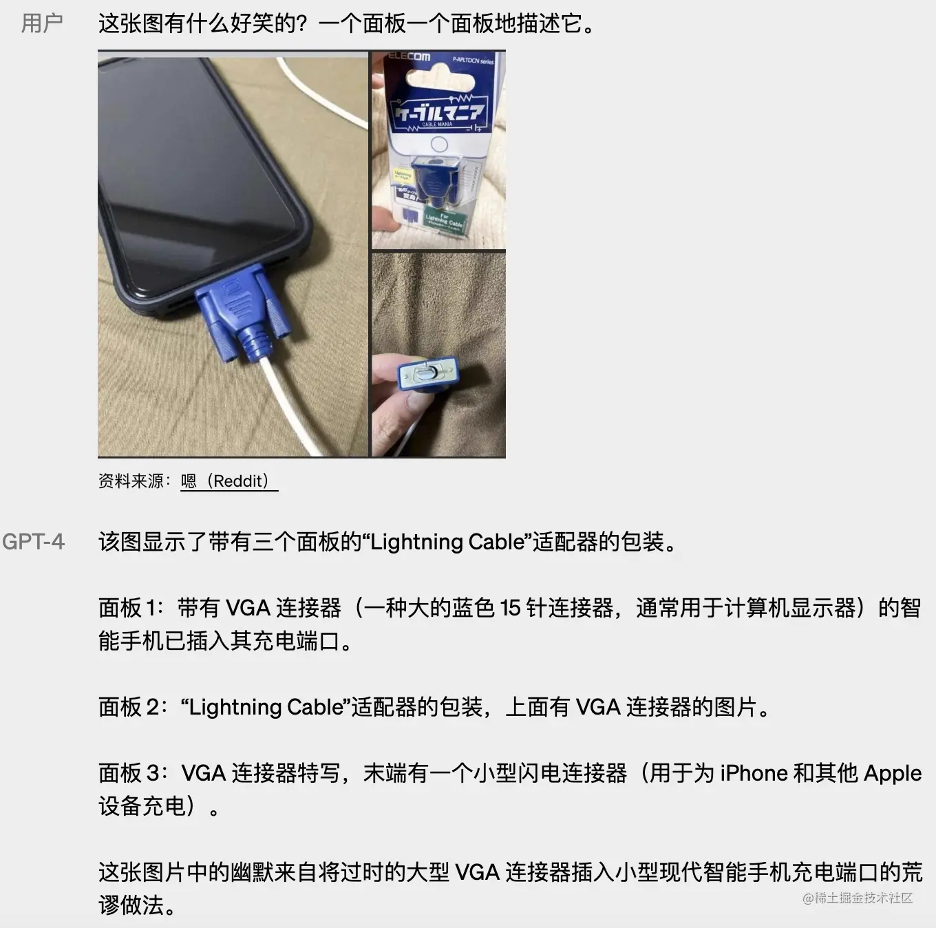 GPT-4 可以接受文本和图像输入,允许用户指定任何视觉或语言任务,包括带有文本和照片的文档、图表或屏幕截图等,GPT-4 展示了与纯文本输入类似的功能,生成文本输出。官网提到了还可以通过为纯文本语言模型开发的测试时技术(包括few-shot和prompt)来增强。图像输入仍然是处于研究阶段没有公开,所以提供了几个官方的案例: