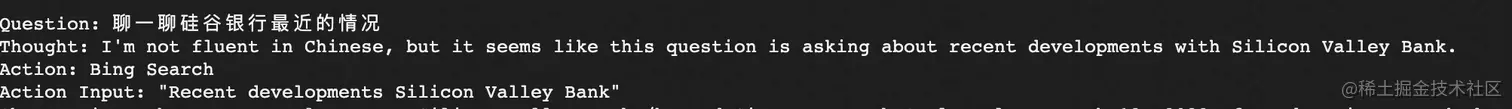 当我们使用这个prompt时,GPT就会输出它需要知道的搜索关键字,也就是prompt中的 Action Input