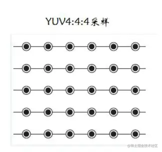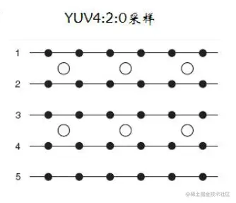 以黑点表示采样该像素点的Y分量,以空心圆圈表示采用该像素点的UV分量