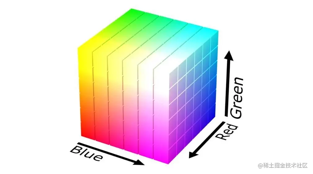 RGB: 按三基色加光系统的原理来描述颜色(红绿蓝)