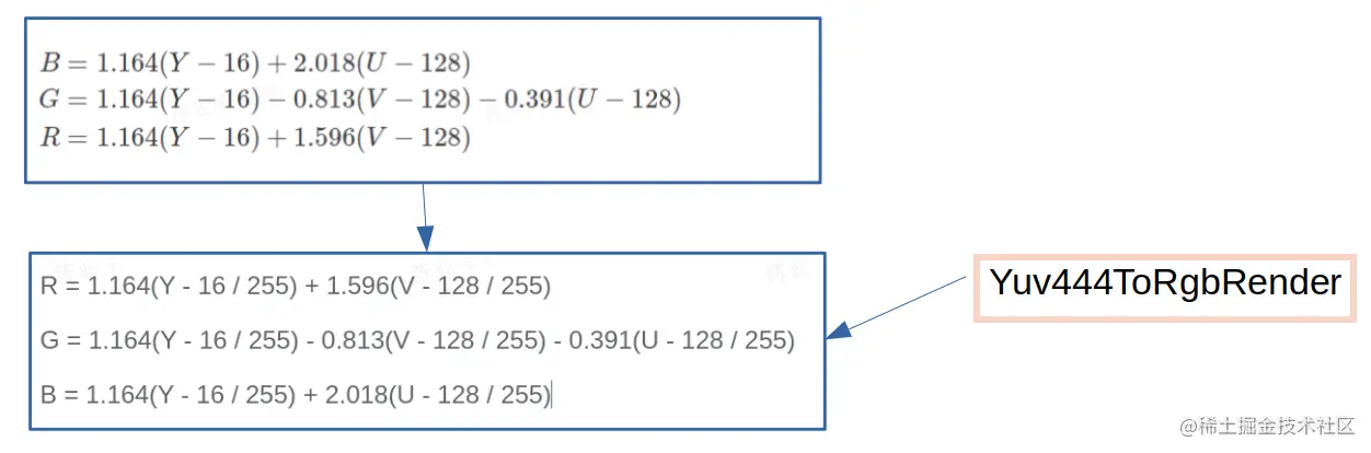 所以YUV颜色模型到RGB颜色模型的转换,应该对应两种方式,分别是模拟YUV->模拟RGB、数字YUV->数字RGB。不过因为标清、高清、以及超清幅面,YUV转RGB的权重值各不相同,需要将模拟信号和数字信号再做一次幅面划分,就出现了2*3 = 6,6中转换公式。