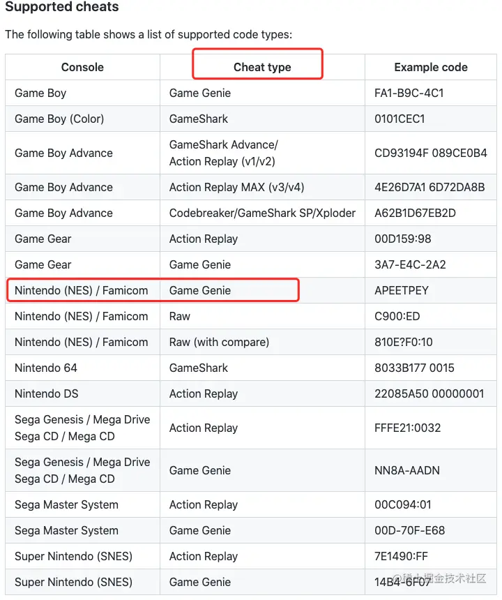 openemu官网给出的金手指支持的类型如下: