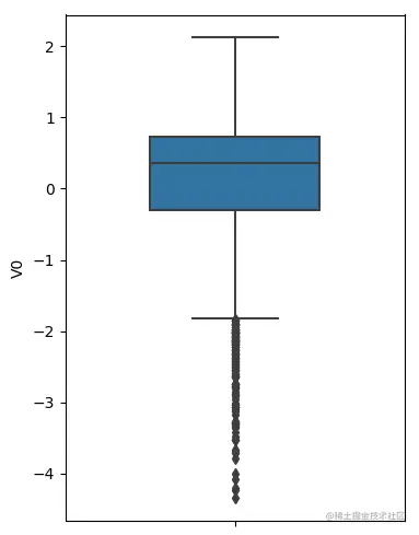 sns.boxplot(train_data['V0'],orient="v", width=0.5)