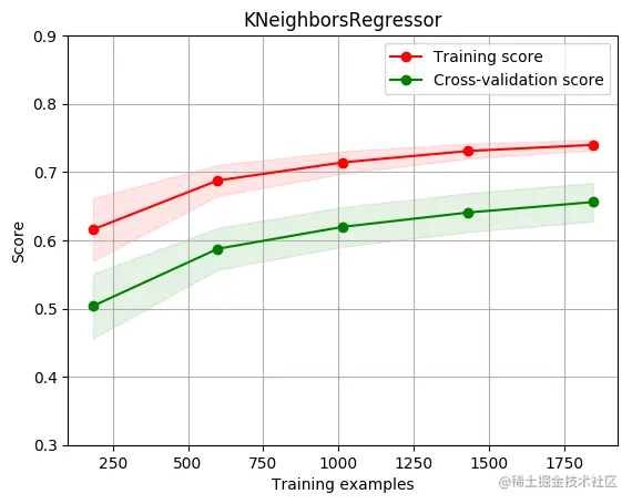 plot_learning_curve(estimator, title, X, y, ylim=(0.3, 0.9), cv=cv, n_jobs=1)