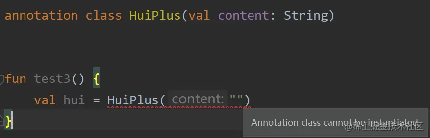 可以看到上面的代码没有丝毫报错。其实我们是可以通过kotlin的反射库是可以调用注解类的构造方法的,但是这样显得繁琐复杂,直接提供一个实例化注解类的特新岂不是更加美哉?