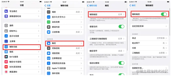 第4步:选择完成,点击**【辅助触控】**,我们就可以通过轻点两下来完成苹果手机屏幕的截图了。