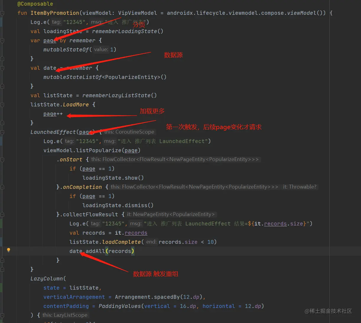 关于Compose切换切换之后 状态丢失的问题 武汉宋小宝 2023-03-27 585 阅读1分钟 这就是一个TabRow 有2个page页面 2个pager界面 都差不多 都是网络请求 加上列表展示。 问题: 1.每次切换pager页面的时候 page没有变化 但是 LaunchedEffect会重新走一次。 2.如何做处理 保证页面切换的时候,保留上个界面的状态,page ,data ,LaunchedEffect只会走一次(除非page变化)