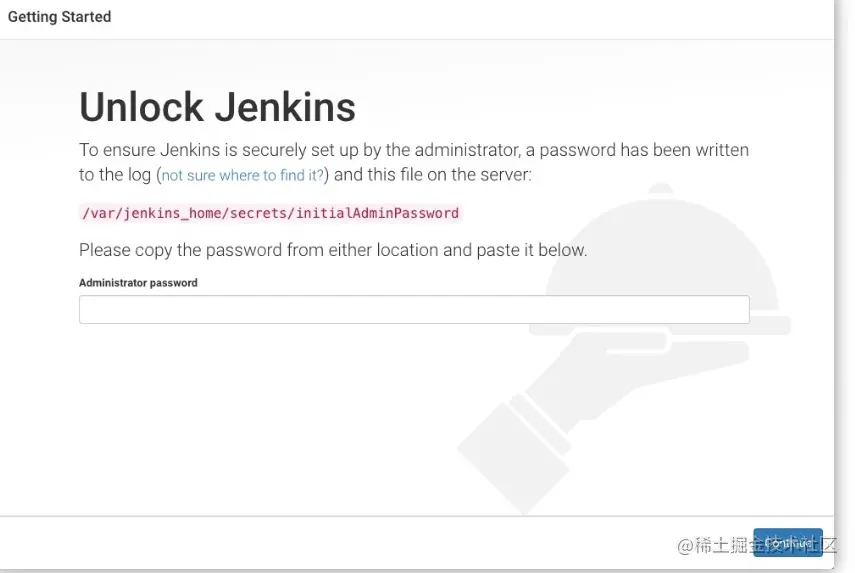 通过地址访问页面时会出来下面的访问页面,可以通过它提供的文件去cat下密码或者直接在打印的日志中复制密码过来激活。