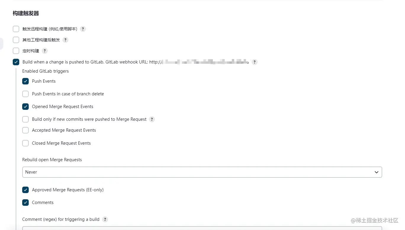 当gitlab中有push操作时会推送到jenkins服务器触发构建;