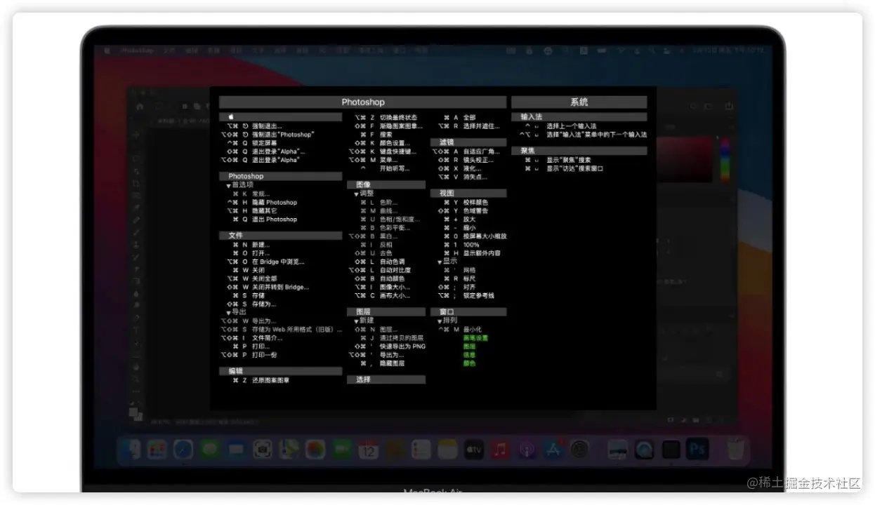 没关系,只要你下载了这款软件,双击Command,即可看到当前App的所有快捷键,适用于Mac系统以及App快捷键展示。