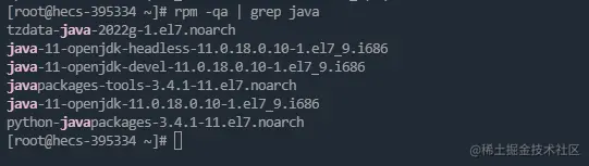 2、发现有输入:rpm -qa | grep java 检测jdk的安装包,