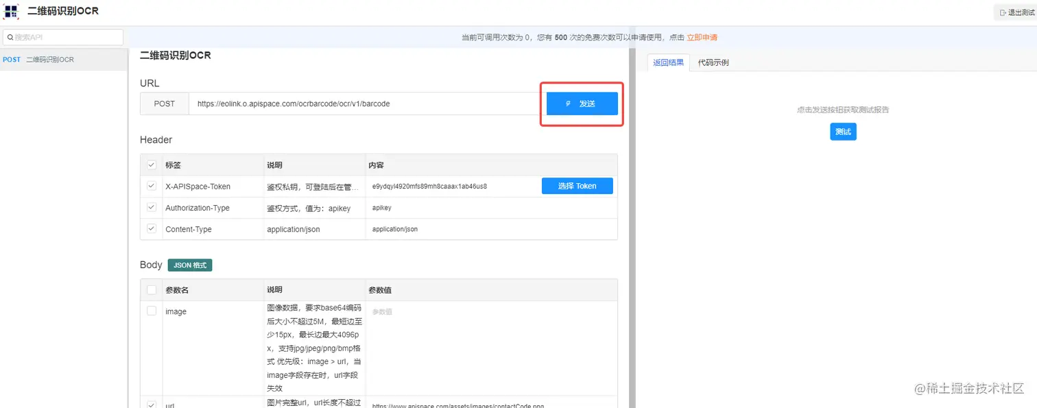 获取 API 密钥后,我们可以参考 API 供应商提供的文档或示例代码,在代码中集成二维码识别OCR API 功能。