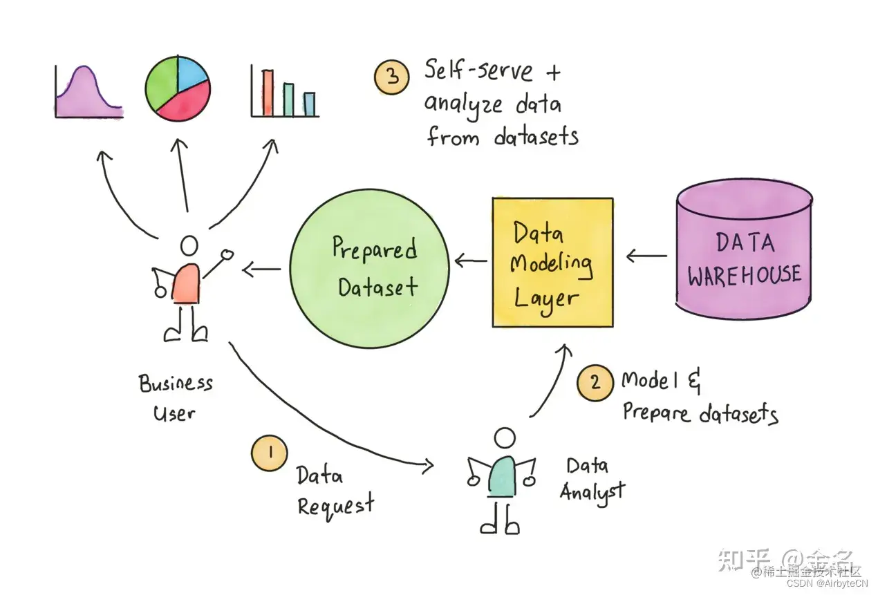 具体说明如下:假设您有一家小公司,你意识到你需要一个数据分析团队,所以你聘请了你的第一位分析师,并使用Google Data Studio或Tableau或其他一些分析平台。您的分析师为管理层制作报告,几个月内一切都很好。但最终你的分析师无法跟上她从最终用户那里收到的所有需求,所以你雇佣了第二个分析师,还有第三个、第四个…。然后你的公司成长起来,创建了向不同领导者报告的部门,每个部门都雇佣了自己的分析师,现在你在公司的各个部门都有一群分析师,都在编写查询或调整Excel电子表格,只是试图跟上你的公司向他们提出的业务要求。
