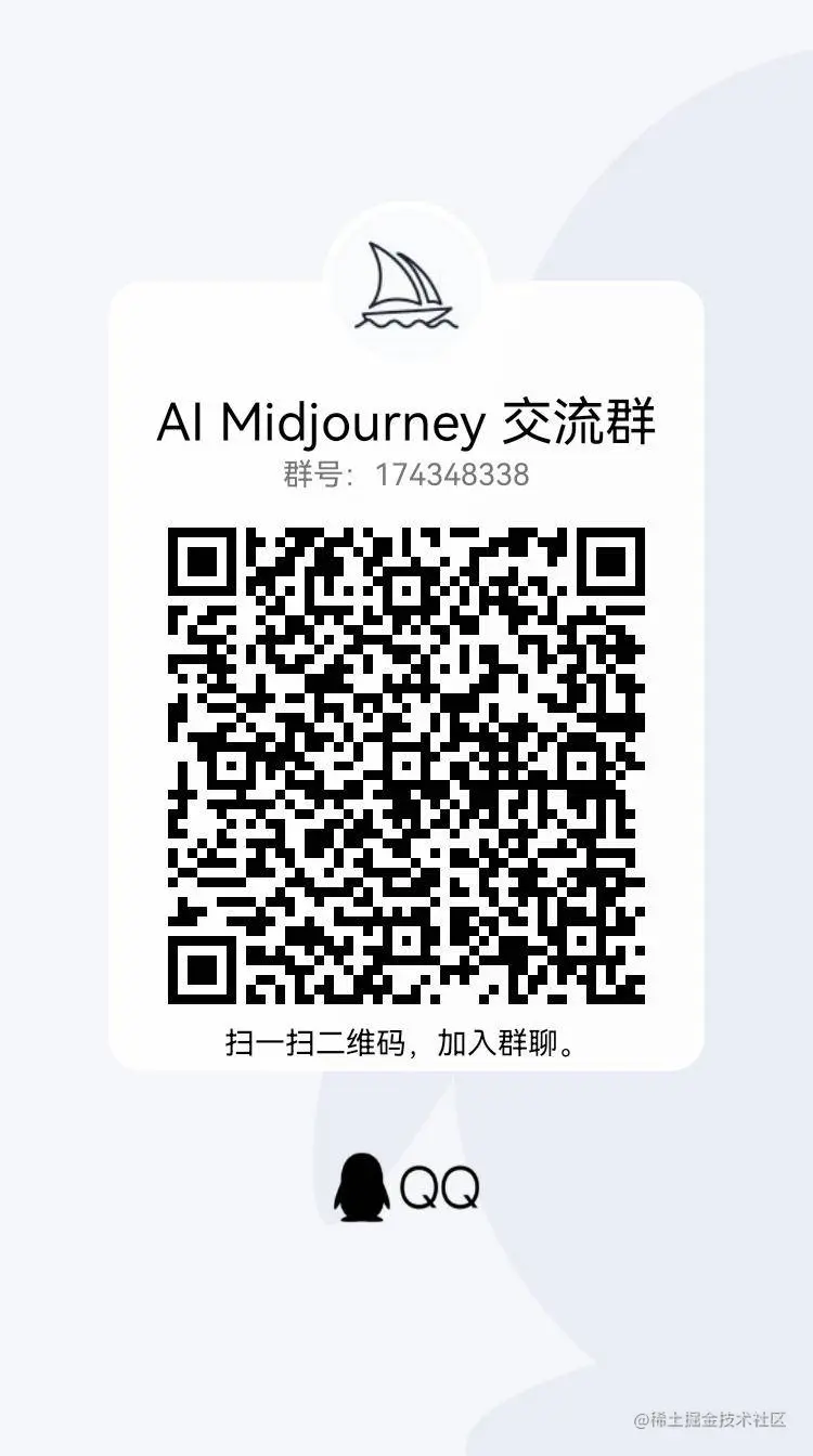 好了,Midjourney基本操作流程就是这样,如果想更深入学习,可以加入我们的AI绘画交流群,与志同道合的人互相学习,一起探讨AI绘画的前沿技术。