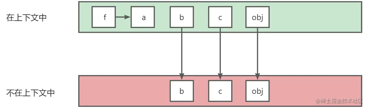 如:函数内部声明一个变量时,这个变量会被加上存在于上下文中的标记。当变量离开上下文时(函数结束时),也会被加上离开上下文的标记。