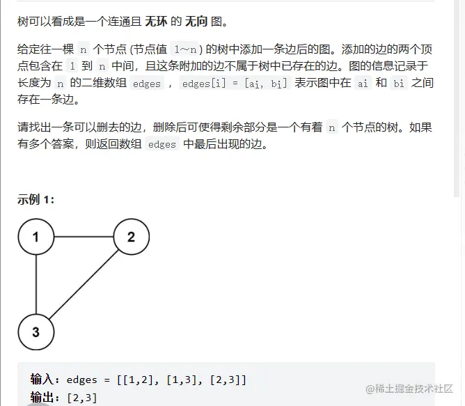 确保返回 edges 最后出现的边 我们采用 加一条边 判一次环.
